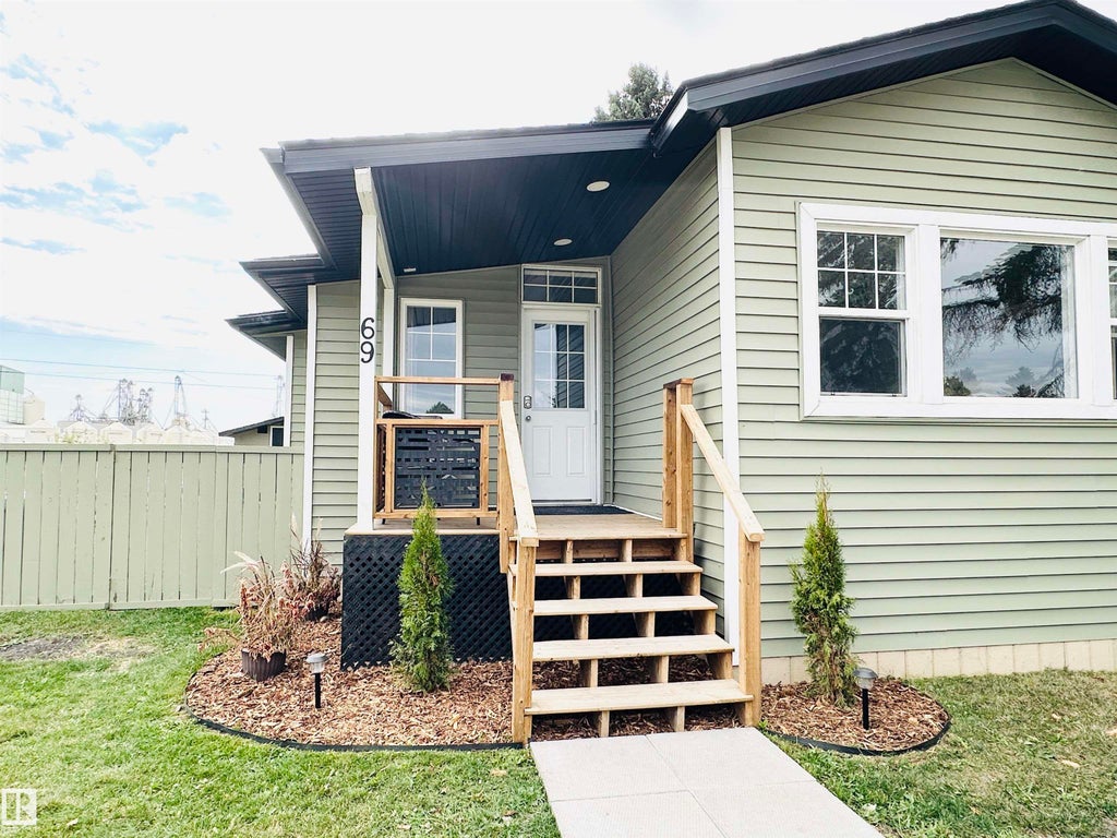 Look at this charming modular home! Completely remodeled in 2024, it offers just over 1,500 sq ft of living space, making it feel more like a spacious residence than a typical modular home! New additions include front and side decks, a welcoming entrance hall, an additional bedroom, and a primary bedroom with an ensuite located at one end of the home. The layout includes a total of 4 bedrooms and 2 full bathrooms. The primary bedroom boasts a lovely 5-piece ensuite that includes both a tub and a separate shower. The kitchen features an open layout with plenty of cupboards and storage, perfect for all your cooking needs. The front and side decks provide an ideal spot to enjoy your coffee on a pleasant morning. This lovely home comes with a convenient storage shed and is fully fenced. Conveniently located within walking distance to schools, and close to shopping and recreational facilities, this modular home has so much to offer. Come! See it for yourself to truly appreciate its charm!