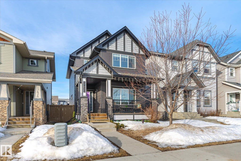 Your next chapter starts here! This adorable 2 storey home is ready for its next family-a place to grow,gather & unwind. Located on a great street w/ ample parking & across from a landscaped centre boulevard island, this property has great curb appeal w/ its sweet front porch & bright front door! The main floor features 9ft ceilings, a sunny front living room, dining space & beautiful kitchen w/ stainless steel appliances & quartz countertops. This level also boasts the perfect little office space w/ built-in desk & cabinets, a 2 pce guest bathroom, back entry that leads out to the sizeable deck, maintainable yard & double detached garage. Upstairs hosts 3 bedrooms & 2 bathrooms which includes the primary bedroom w/ vaulted ceilings & a 5pce ensuite w/ double sinks! Finishing off this level is the convenient upstairs laundry room. Additionally the basement has 9ft ceilings,rough in plumbing for future bathroom & a clean palette to complete. Another property highlight is central A/C for those warm summers.